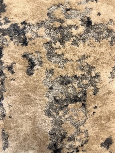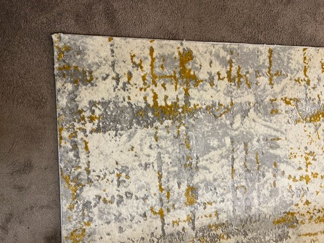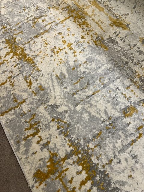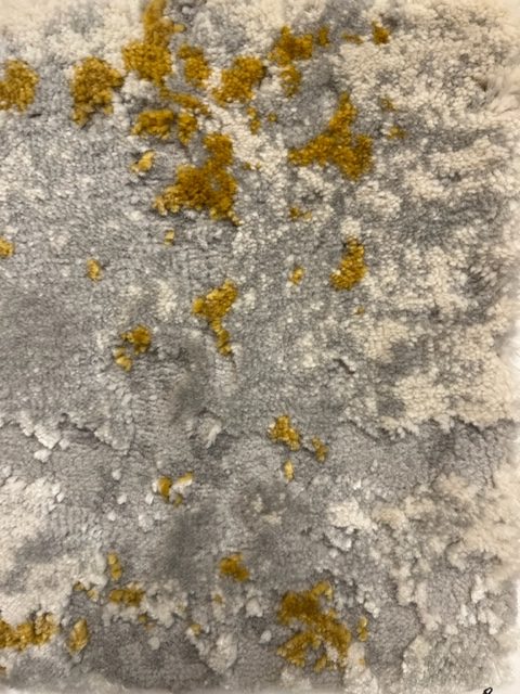 ALFOMBRA DIBUJO ABSTRACTO EN GRIS , BLANCO ROTO Y MOSTAZA , TAMBIEN EN BLANCO ROTO , ARENA Y AZUL