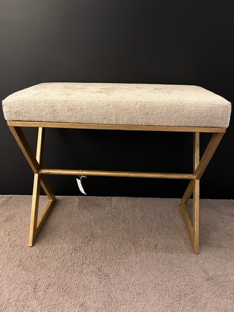 BANQUETA TAPIZADA , ESTRUCTURA ORO PATINADO Y TAPIZADO A ELEGIR .